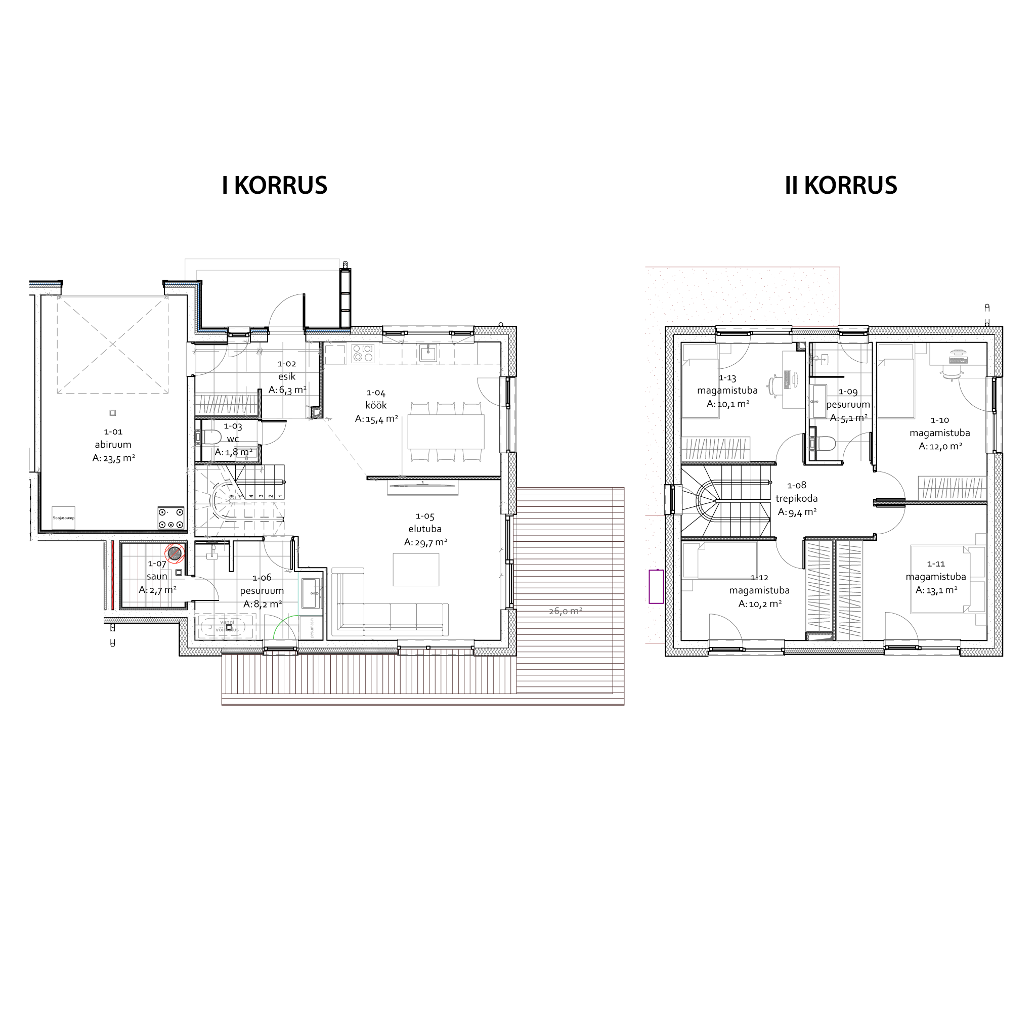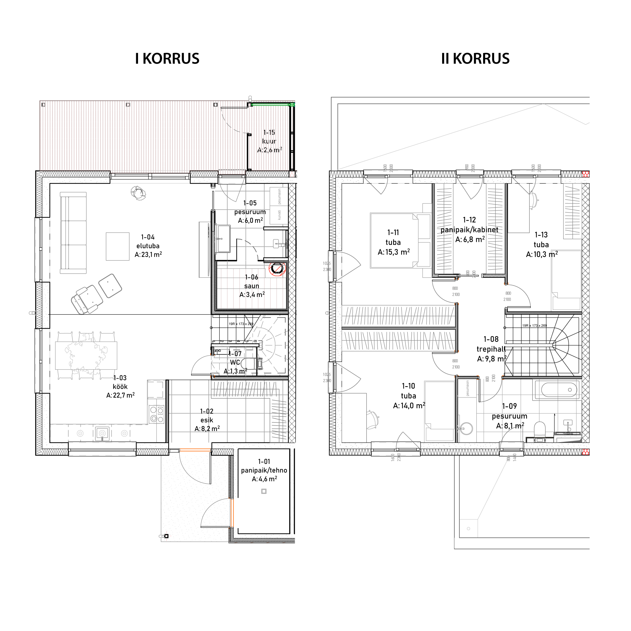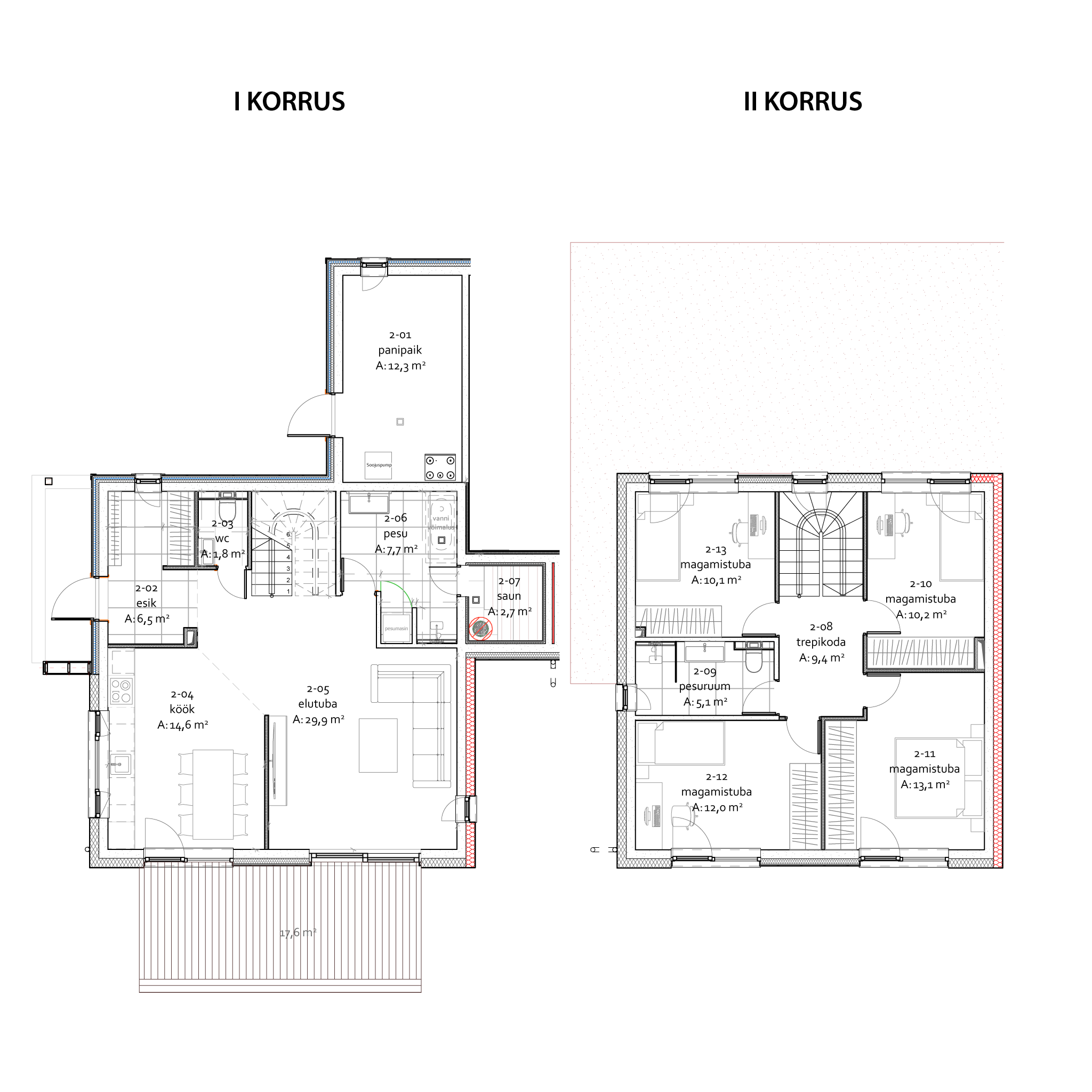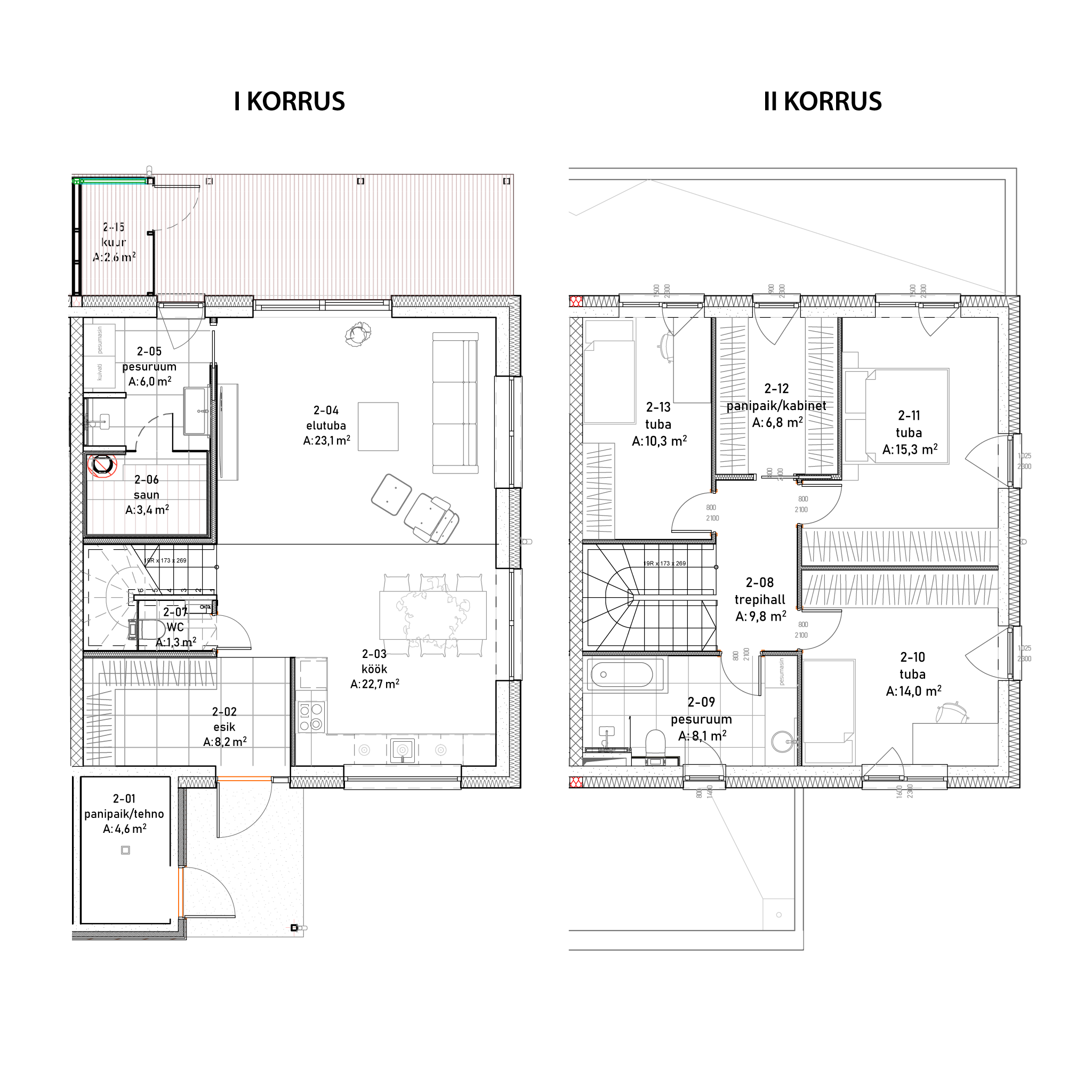 | Välisseinad | Tehases toodetud puitelement (Timbeco) |